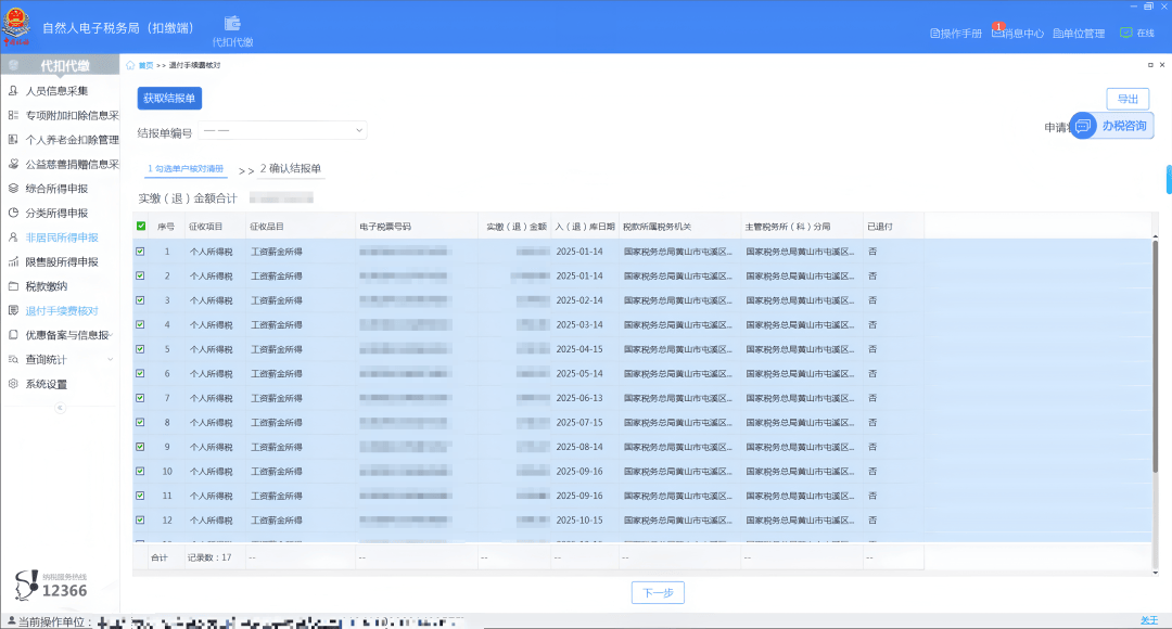 自2026年1月1日至3月31日,扣缴单位财务人员可通过自然人电子税务局(扣缴端)或自然人电子税务局(WEB端)“退付手续费核对”模块申请办理2025年度个人所得税扣缴手续费退付。